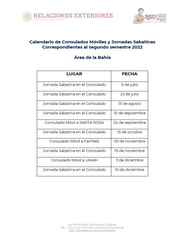 415 563 8319 E-mail de Contacto Email. Consulados Móviles y Jornadas Sabatinas. Endereço 300 Montgomery St Suite 300 San Francisco CA 94104 Jurisdição Região Norte da Califórnia e os Estados de Alasca Oregon e Washington Contatos Telefone. Consulados Atlanta Georgia Chicago Illinois Columbus Ohio Dallas Texas Denver Colorado Houston Texas Lake Worth Florida Los Ángeles California Miami Florida.